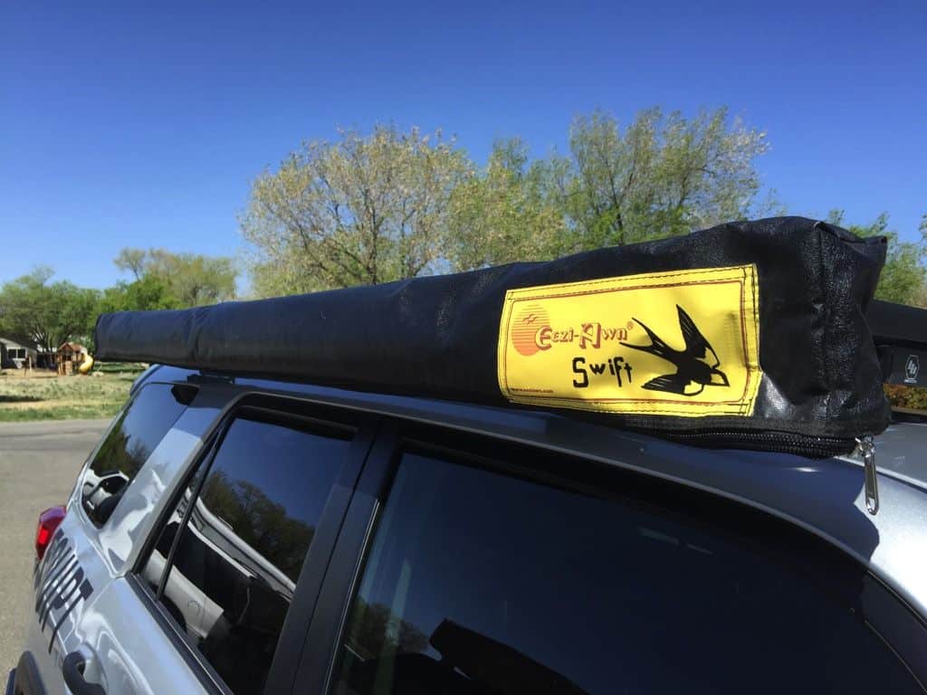 Markiza Eezi-Awn Swift to lekka, samonośna markiza, którą może rozłożyć jedna osoba. Ramiona markizy wykonane są z wytłaczanego aluminium, a materiał to mocny ripstop o gramaturze 260 g/m², co daje stosunkowo niską wagę całkowitą 16 kg. Markiza schowana jest w pokrowcu PVC z zamkami YKK. Dodatkowa jest wyposażona w nogi, które można rozłożyć w celu dodatkowego podparcia w razie wietrznej pogody.